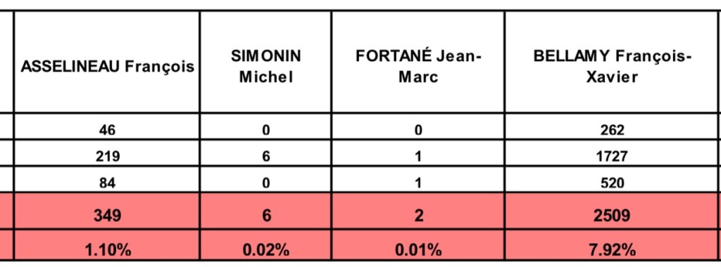 Les autres groupes ou partis entre 0 et 2,5% n’obtiennent eux aucun siège mais notons tout de même ce « beau score » de « notre » Jean Lassalle (2,36%).