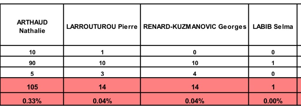Seuls les résultats > 100 votes exprimés ont été pris en compte pour cette analyse rapide