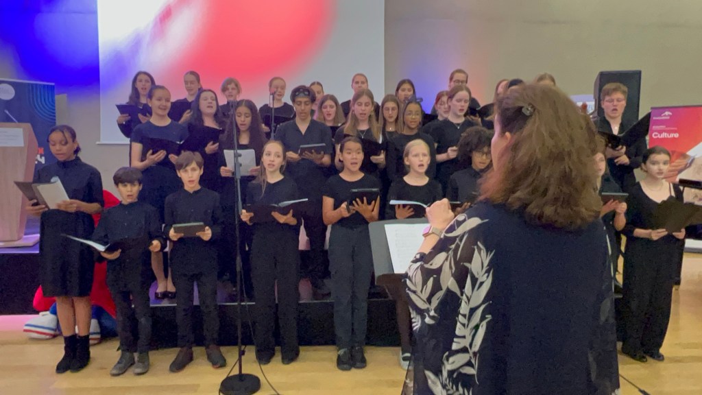 - Chorale Inspirante : Un des moments forts de la soirée fut la prestation d’une chorale de jeunes, qui a magnifiquement interprété dans l’ordre l’hymne luxembourgeois, puis « La Marseillaise et enfin « L’Hymne à la Joie », l’hymne européen. Une véritable célébration de l’unité et de la diversité culturelle. Très émouvant …