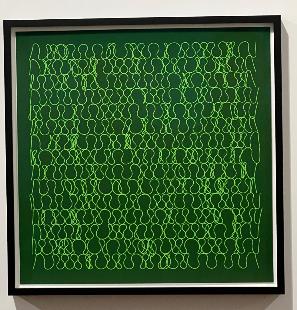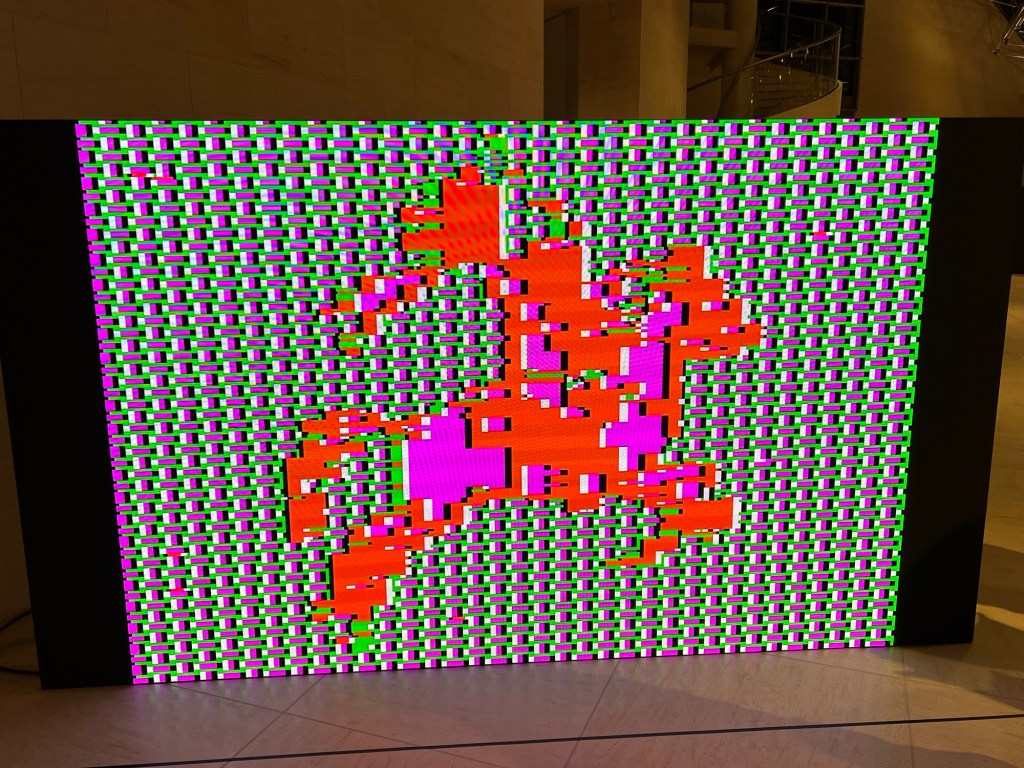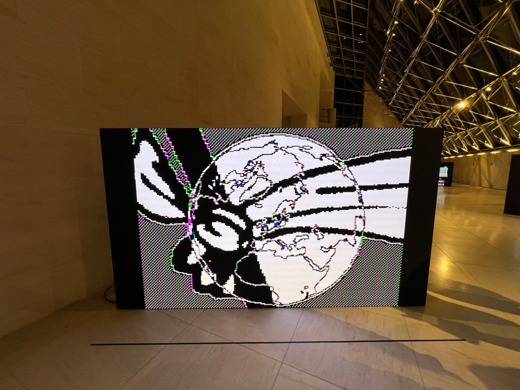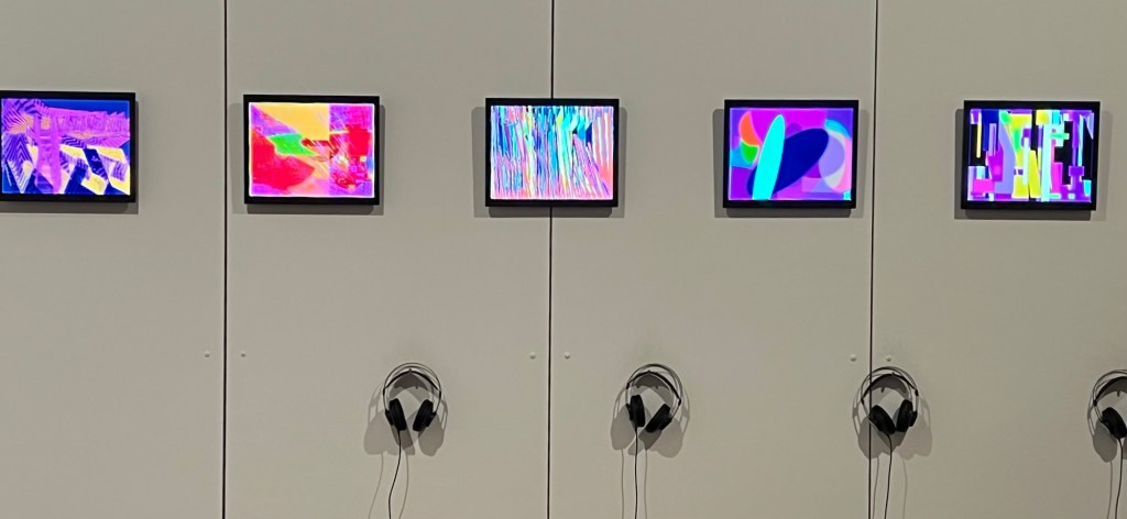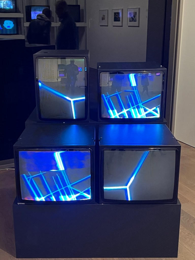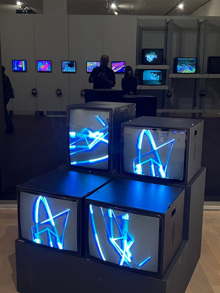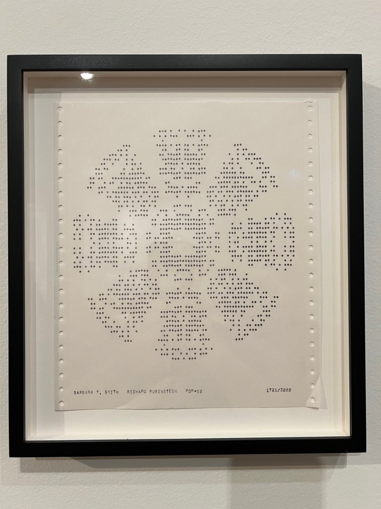 La soirée a débuté à 18h par une visite guidée (merci Tiago) de l’exposition Radical Software: Women, Art & Computing 1960–1991. Cette exposition met en lumière le rôle pionnier des femmes dans le développement des pratiques artistiques numériques et informatiques. À travers une sélection d’œuvres et d’archives, les visiteurs ont pu explorer comment des artistes et programmeuses ont façonné les prémices de l’intersection entre art et technologies.