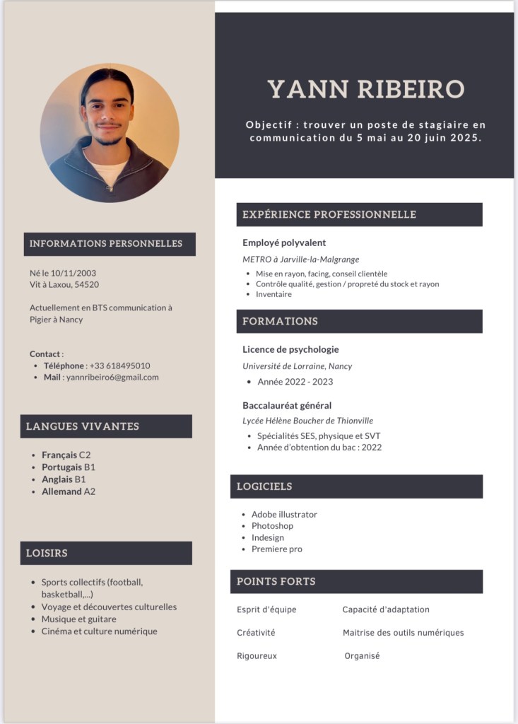 Chaque semaine, nous mettons en avant un CV, présenté sous forme de photo et disponible au téléchargement au format PDF. Notre objectif est de leur offrir une visibilité accrue auprès des recruteurs et entreprises locales, et de contribuer à leur succès professionnel.