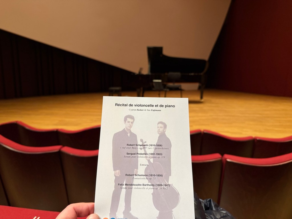Le 13 février, quatre membres de la Communauté des Français du Luxembourg se sont réunis pour assister à un récital exceptionnel de violoncelle et de piano donné par Cyprien Keiser et Ilan Zajtmann. Ce concert, organisé dans le cadre prestigieux de la Philharmonie du Luxembourg, a offert une soirée de pure élégance musicale dans une salle comble.