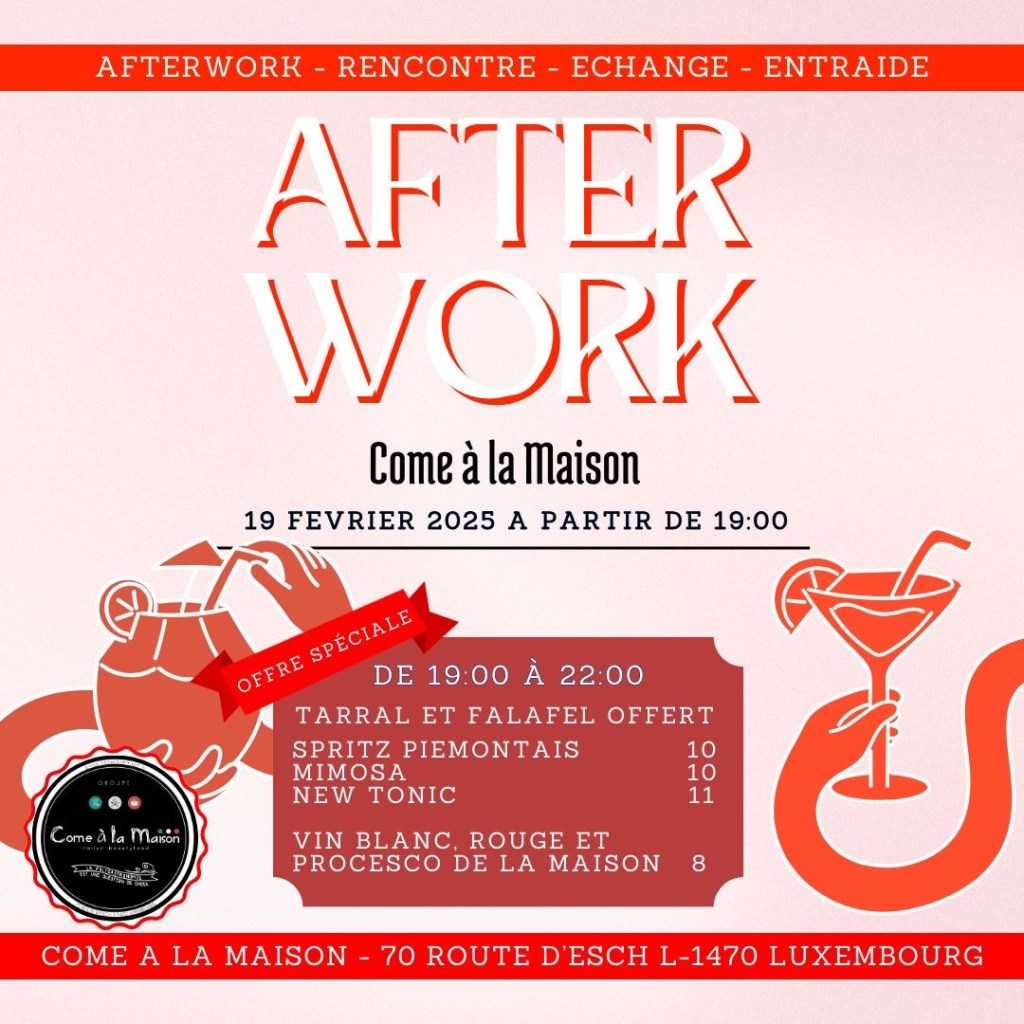 En effet, le bar restaurant « Come A la Maison » nous a contacté pour accueillir notre deuxième afterwork du mois de Février. Cela montre tout l’intérêt que portent dorénavant les bars et les « place to be » à notre Communauté des Français et des jeunes Français et surtout aux VIE du Luxembourg.