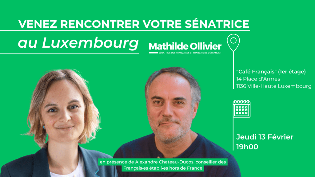 Lors de son passage au Luxembourg, Mathilde Ollivier a réaffirmé son engagement à défendre les intérêts des Français à l’étranger tout en poursuivant ses combats écologiques et sociaux. Cette rencontre a été l’occasion d’un échange enrichissant sur les enjeux qui concernent directement notre communauté et les perspectives d’avenir.