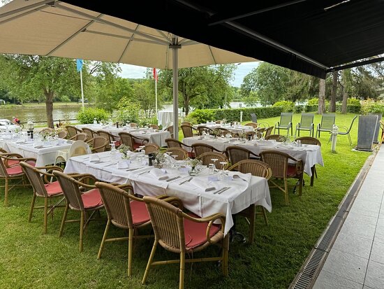 Après votre repas, aux beaux jours, vous pourrez vous détendre sur la belle terrasse avec une vue imprenable sur la Moselle, un cadre idéal pour savourer un verre en toute sérénité.