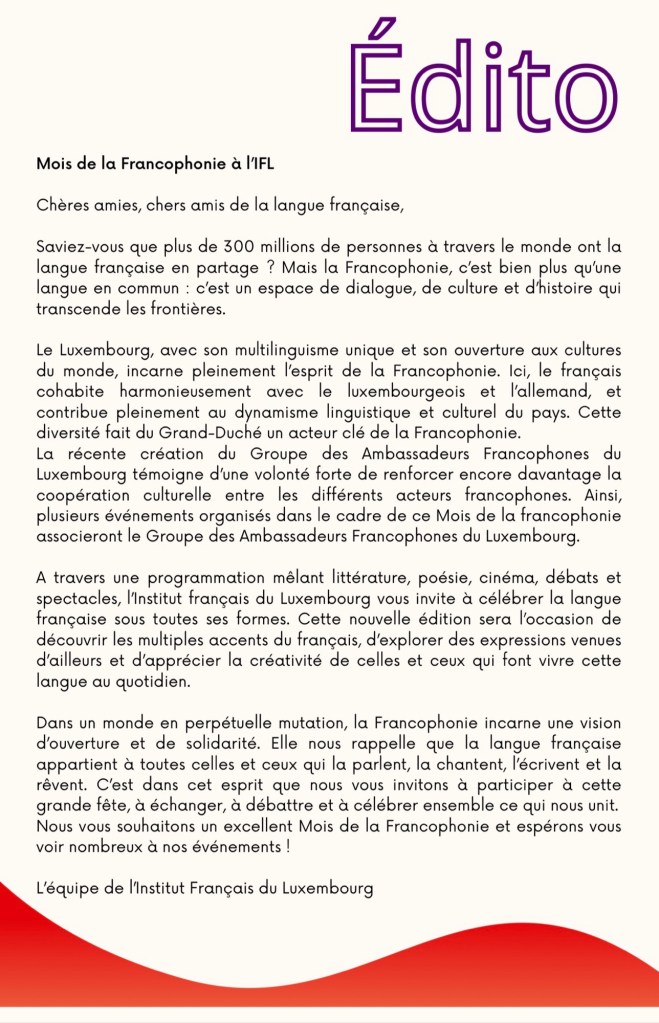 📖 Découvrez le programme complet du Mois de la Francophonie 2025 au Luxembourg en consultant la brochure officielle.