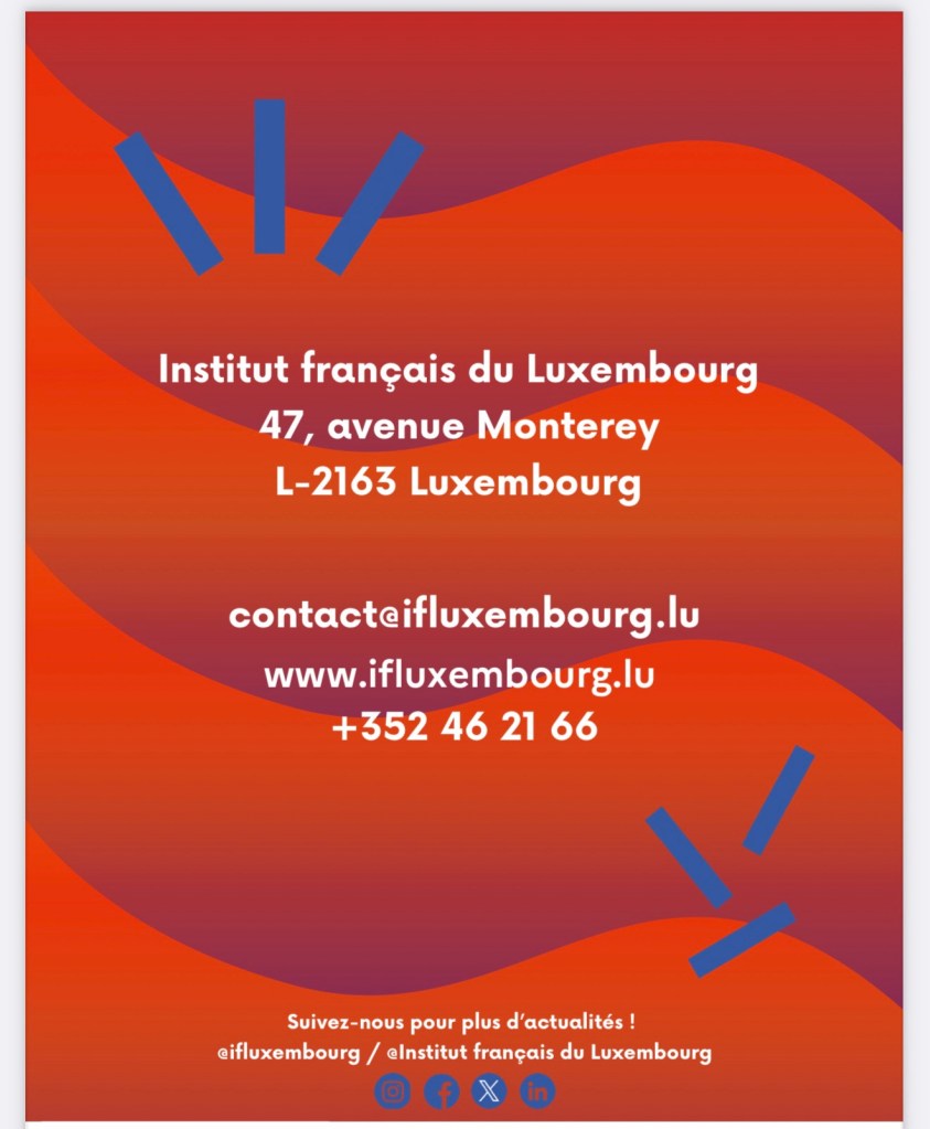 Chaque année, l’Institut français du Luxembourg célèbre la richesse et la diversité de la langue française à travers des événements culturels variés : projections, conférences, expositions, rencontres littéraires et concerts.