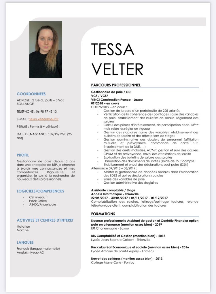 Chaque semaine, nous mettons en avant un CV, présenté sous forme de photo et disponible au téléchargement au format PDF. Notre objectif est de leur offrir une visibilité accrue auprès des recruteurs et entreprises locales, et de contribuer à leur succès professionnel.