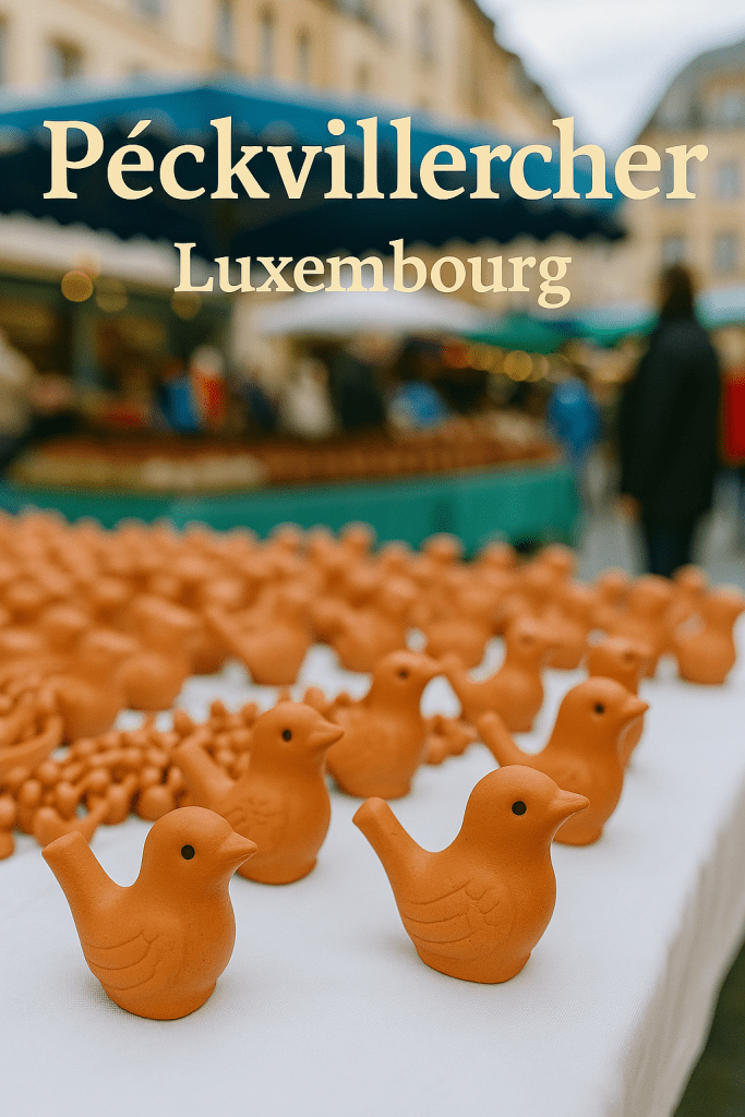 Au cœur du patrimoine luxembourgeois se cache une tradition singulière et charmante : celle des Péckvillercher, ces petits sifflets en terre cuite représentant des oiseaux, connus pour leurs deux sons distincts. Symboles d’une coutume ancienne, ces objets artisanaux refont surface chaque année à l’occasion de l’Éimaischen, une fête populaire profondément ancrée dans la culture du Luxembourg.