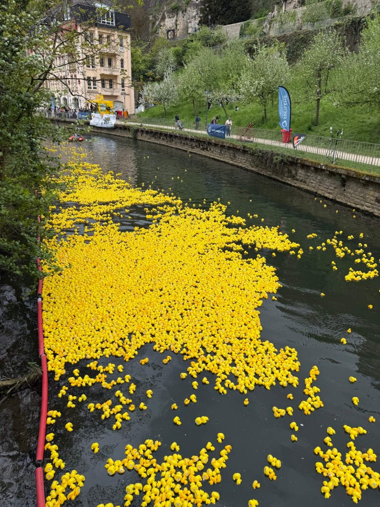Le 26 avril 2025, sous un soleil printanier comme on les aime, la ville de Luxembourg a vibré au rythme de la Duck Race, la mythique course de canards qui attire chaque année des milliers de visiteurs et de fidèles. Sous un ciel radieux et une atmosphère festive, cette édition a encore une fois prouvé que la tradition est bien vivante avec un événement a fait sensation au niveau du Gründ et de l’Abbaye de Neimënster.