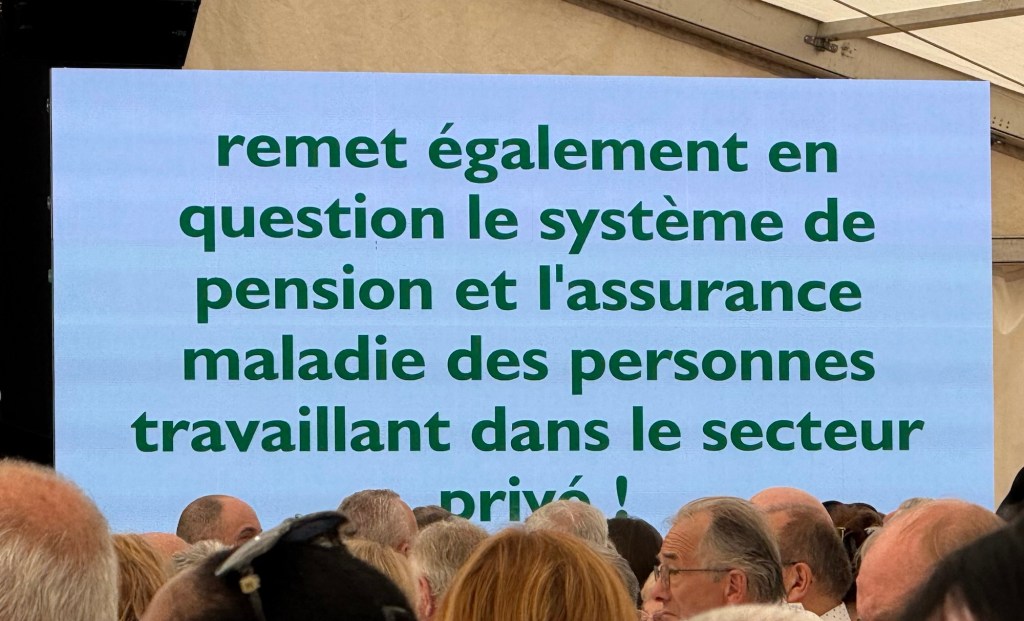Le LCGB a fermement rejeté les propositions du patronat visant à diminuer les pensions. Comme l’indiquait l’une des diapositives du discours :