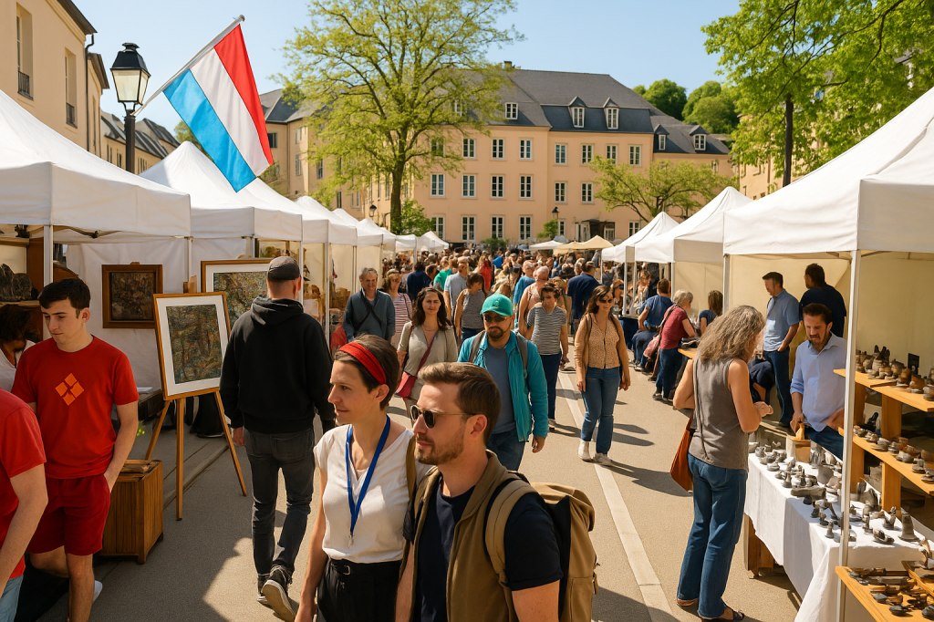 De 10h à 18h, la rue Münster se transforme en une exposition à ciel ouvert où jusqu’à 34 artistes internationaux présentent leurs œuvres. Les visiteurs peuvent découvrir une variété de créations : peintures, dessins, photographies, art du verre, céramiques, sculptures en bois, pierre et métal, ainsi que des œuvres d’art numérique . Cette diversité artistique reflète la richesse culturelle du Luxembourg et offre une opportunité d’échange direct avec les artistes.