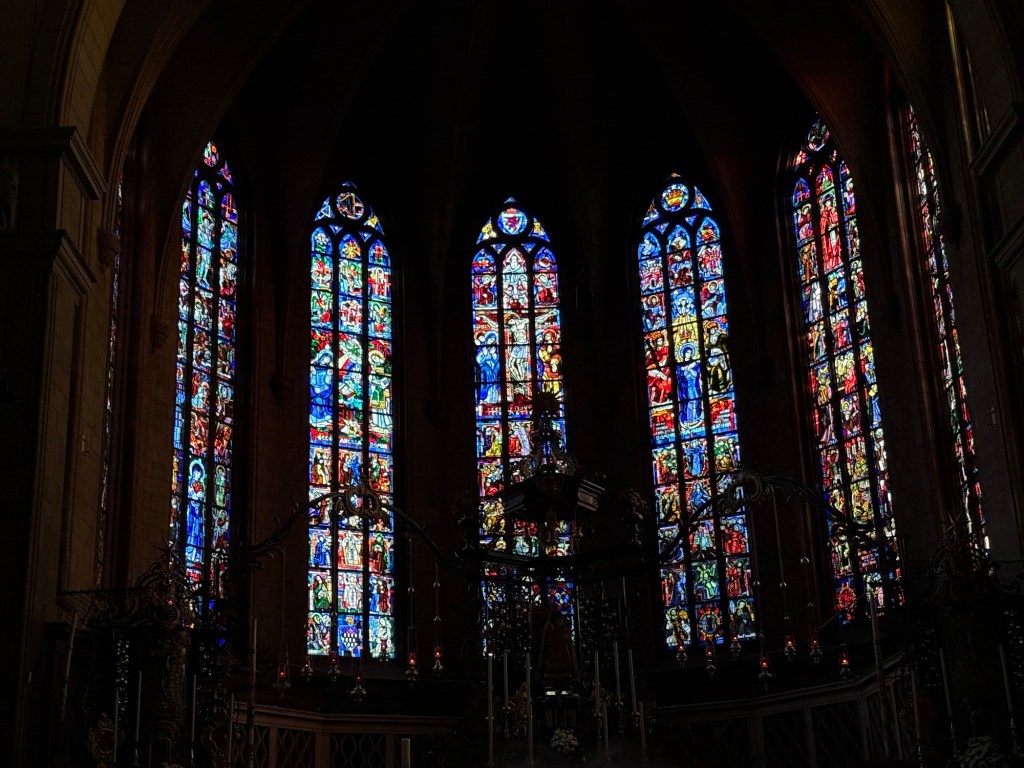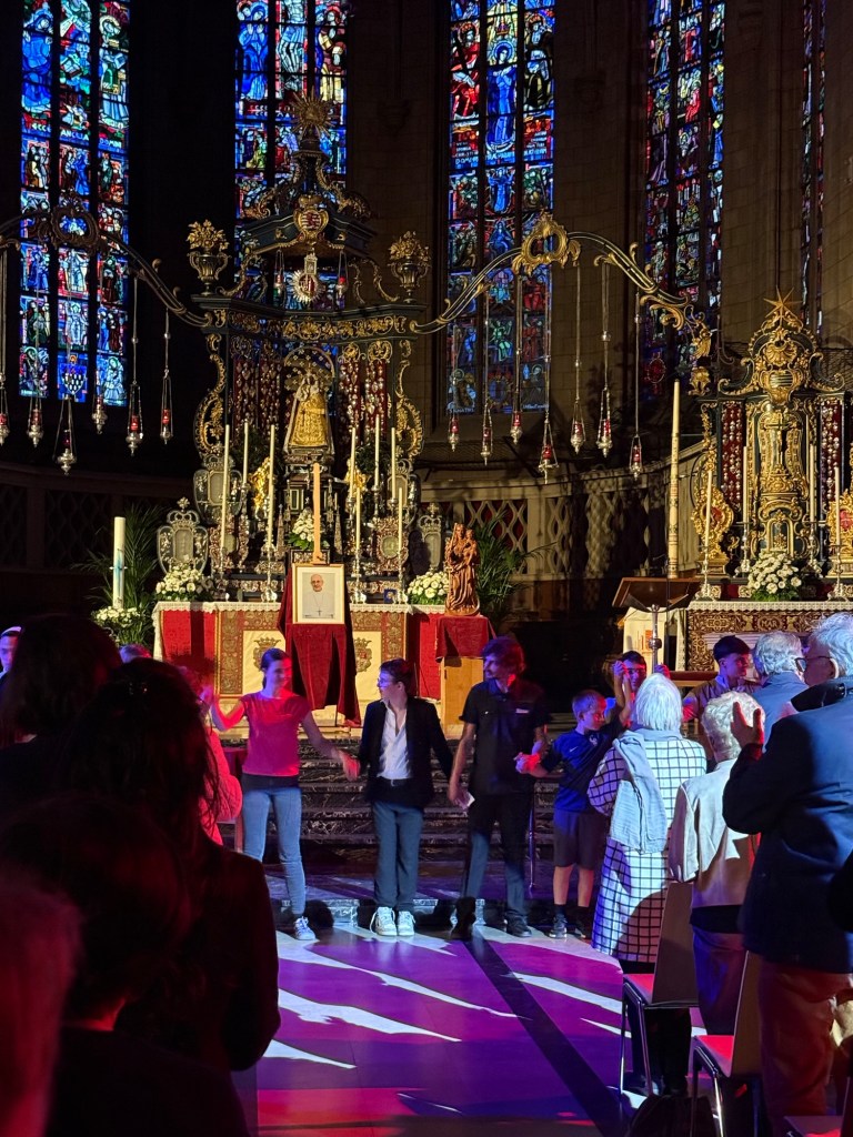 Organisé en trois langues – luxembourgeois, français et anglais – le spectacle gratuit débute chaque soir à 20h30. L’entrée se fait par la rue Notre-Dame. Les photos révèlent un décor somptueux, entre vitraux éclatants, jeux de lumière et mise en valeur de la statue de la Vierge Consolatrice des Affligés, patronne du pays. Une scénographie vivante anime la nef, offrant un moment de recueillement et de fierté collective.