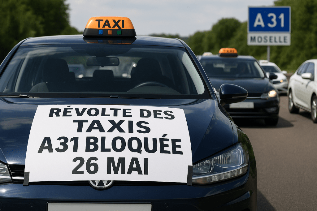 Les chauffeurs de taxi de Moselle entendent frapper un grand coup ce lundi 26 mai 2025 avec une opération escargot d’envergure sur l’autoroute A31, axe stratégique entre Thionville, Metz et Luxembourg. Dès 6h du matin, une mobilisation est attendue, provoquant de fortes perturbations de circulation sur cet itinéraire très fréquenté par les frontaliers.