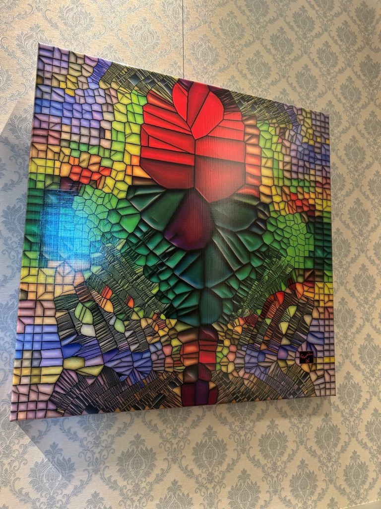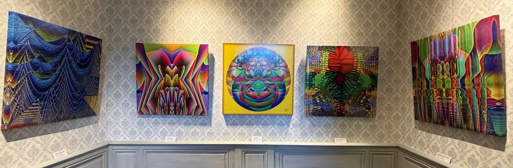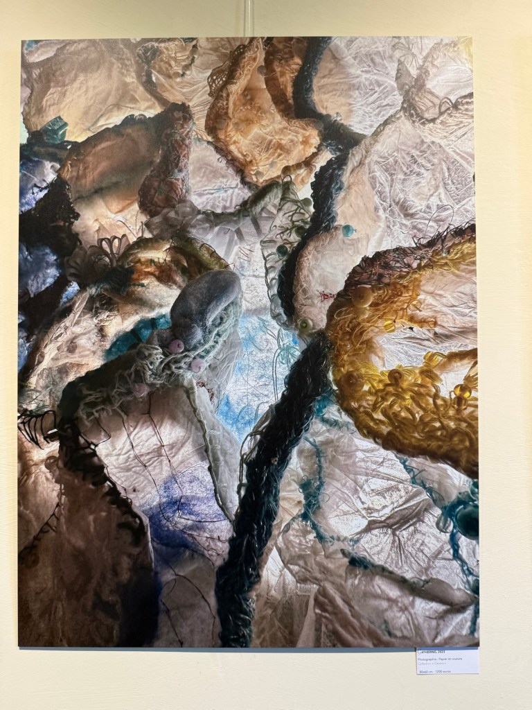 Les œuvres dialoguaient entre elles dans un parcours sensible, où les matières (bois, verre, pigments, tissus), les émotions (nostalgie, force, tendresse) et les techniques (encaustique, photographie industrielle, art digital) s’entremêlaient avec poésie et force.