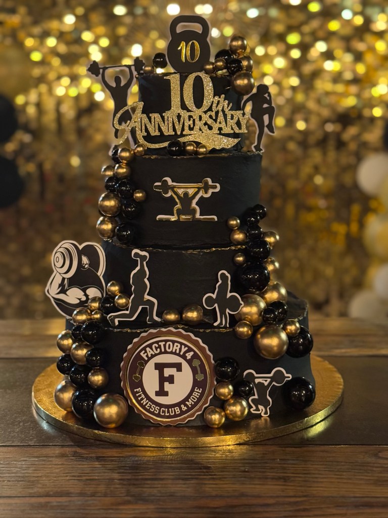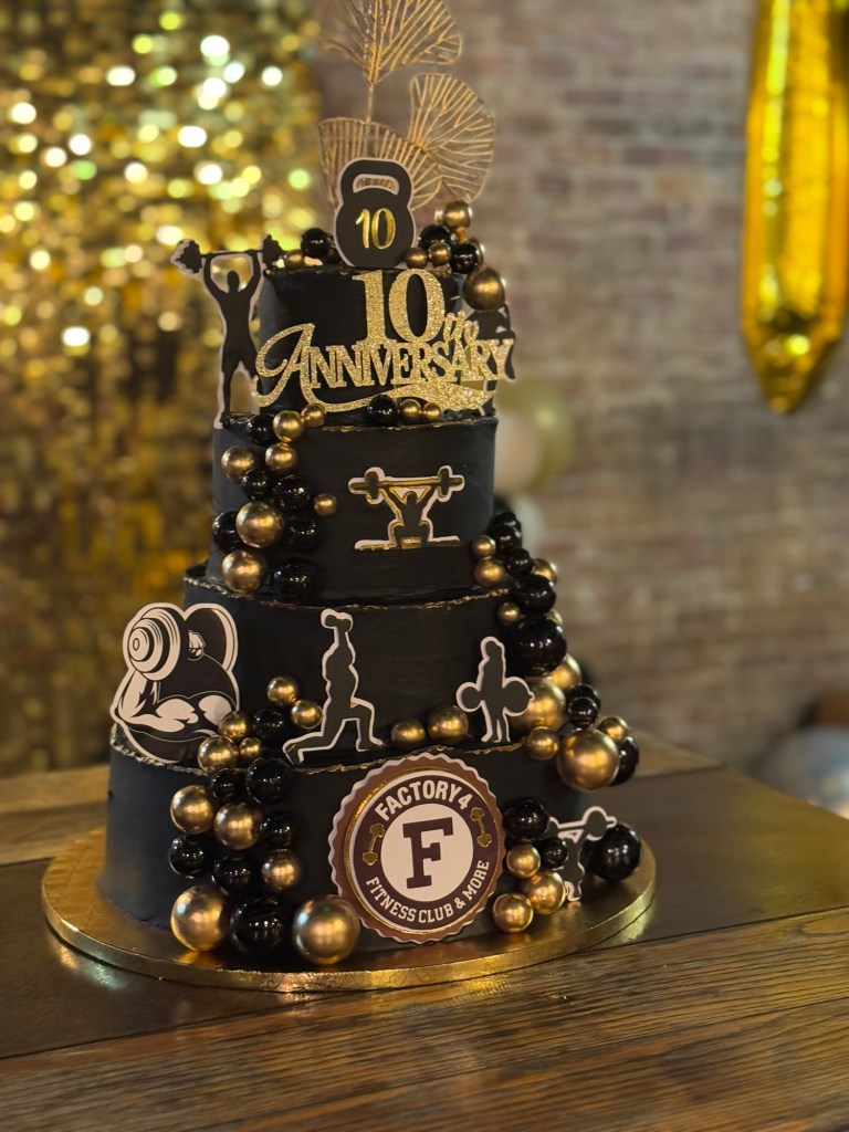 Le dĂ©cor ? Un mĂ©lange de dorĂ©, de noir, de musculation et de paillettes, incarnĂ© par un gĂąteau spectaculaire Ă lâeffigie du club. Trois Ă©tages de chocolat dĂ©corĂ©s de silhouettes de sportifs, de poids et de kettlebells, surmontĂ©s de feux dâartifice miniatures : un clin dâĆil parfait Ă lâesprit Factory4.