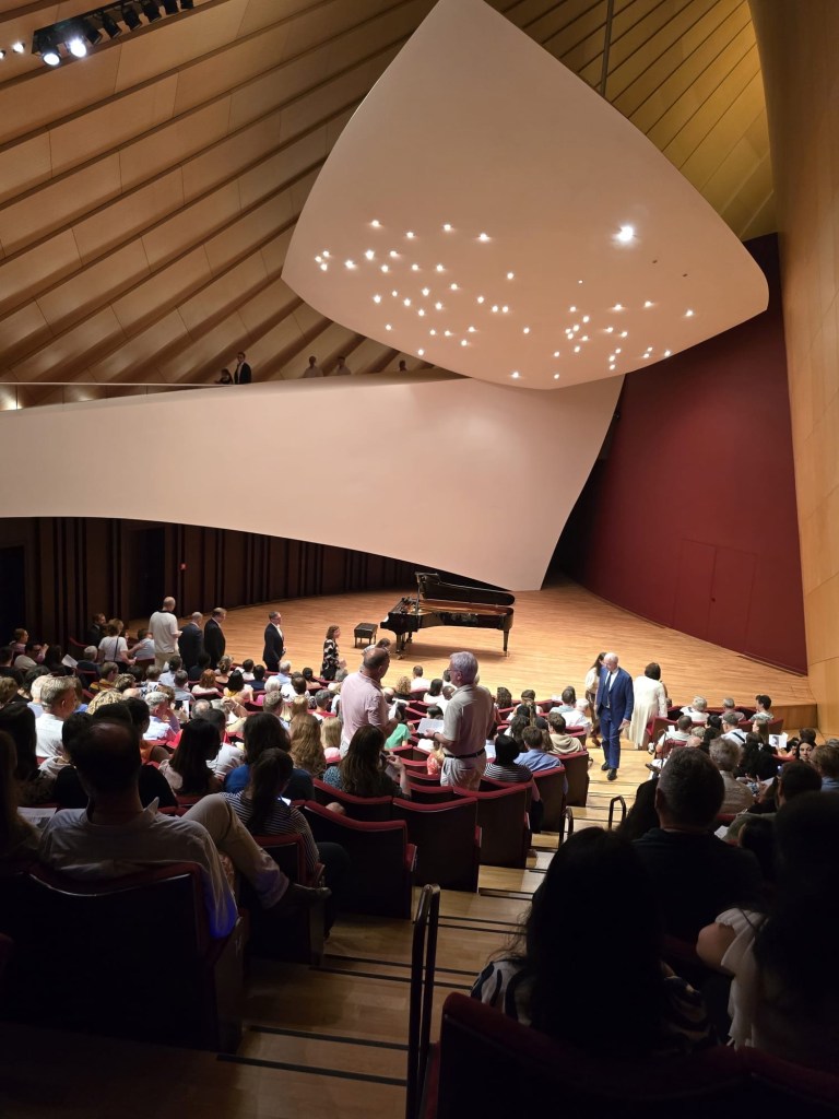 Ce moment a permis à 64 invités – membres, sympathisants et même nouveau (Caroline, Didier 😉) de la Communauté – d’assister gratuitement à un concert dans l’un des hauts lieux de la musique classique en Europe : la Philharmonie de Luxembourg. Située au Kirchberg, la salle de concert s’est une nouvelle fois imposée comme un écrin prestigieux pour accueillir ce récital de piano en solo, sous les doigts inspirés d’un interprète reconnu sur la scène internationale.