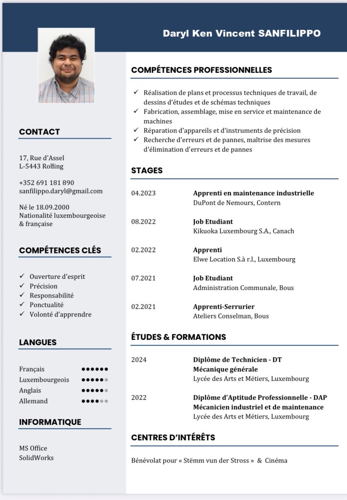 CV de Daryl SANFILIPPO / Maintenance / La Communauté Française en recherche d’opportunités