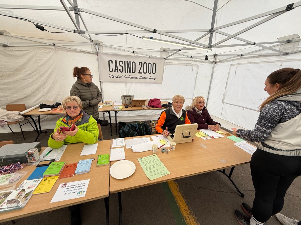 les inscriptions animĂ©es sous la tente, la nature automnale aux teintes rouilles ou dorĂ©es, les paysages agricoles de Moselle, les pauses conviviales Ă lâatelier municipal, et bien sĂ»r, les marcheurs heureux, parfois accompagnĂ©s de leurs chiens.
