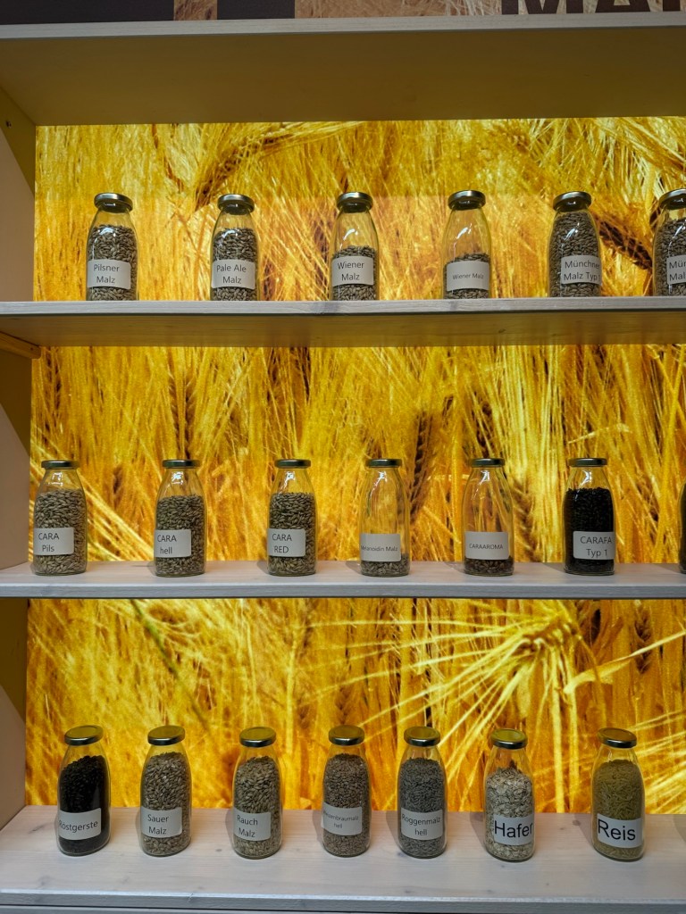 La visite a dĂ©butĂ© par un un petit film et la photo de groupe avant le passage dans la salle des matiĂšres premiĂšres, oĂč sont prĂ©sentĂ©s les diffĂ©rents types de malts, de houblons et de levures utilisĂ©s dans la fabrication. Les visiteurs ont pu suivre lâensemble du processus de production :