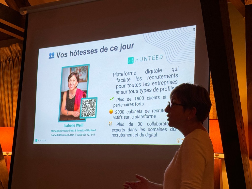 Isabelle Weill, Managing Director Belux & Investor chez Hunteed, plateforme digitale de mise en relation entre entreprises et cabinets de recrutement. Elle a présenté les leviers technologiques qui facilitent la recherche de talents et optimisent les processus de recrutement.