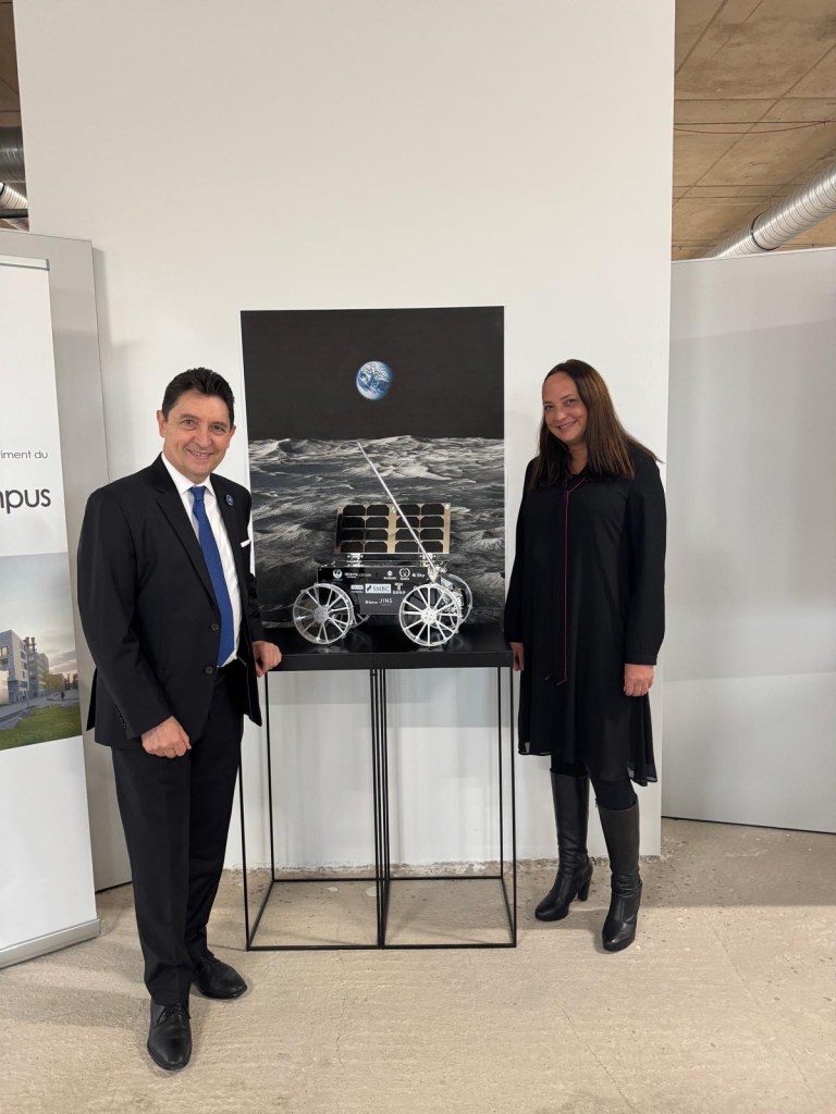 Il a ensuite rejoint Belval pour le lancement des travaux du premier bâtiment du Space Campus, en présence de trois ministres luxembourgeois (Mme Yuriko Backes, ministre de la mobilité, des TP et de la Défense, Mme Stéphanie Obertin Ministre de la recherche et de l’Enseignement supérieur ; Mr Lex Delles, ministre de l’Economie, des PME, de l’Energie et du Tourisme. Monsieur christian Weis, député Maire de la Commune d’Esch et Président de Pro-Sud)