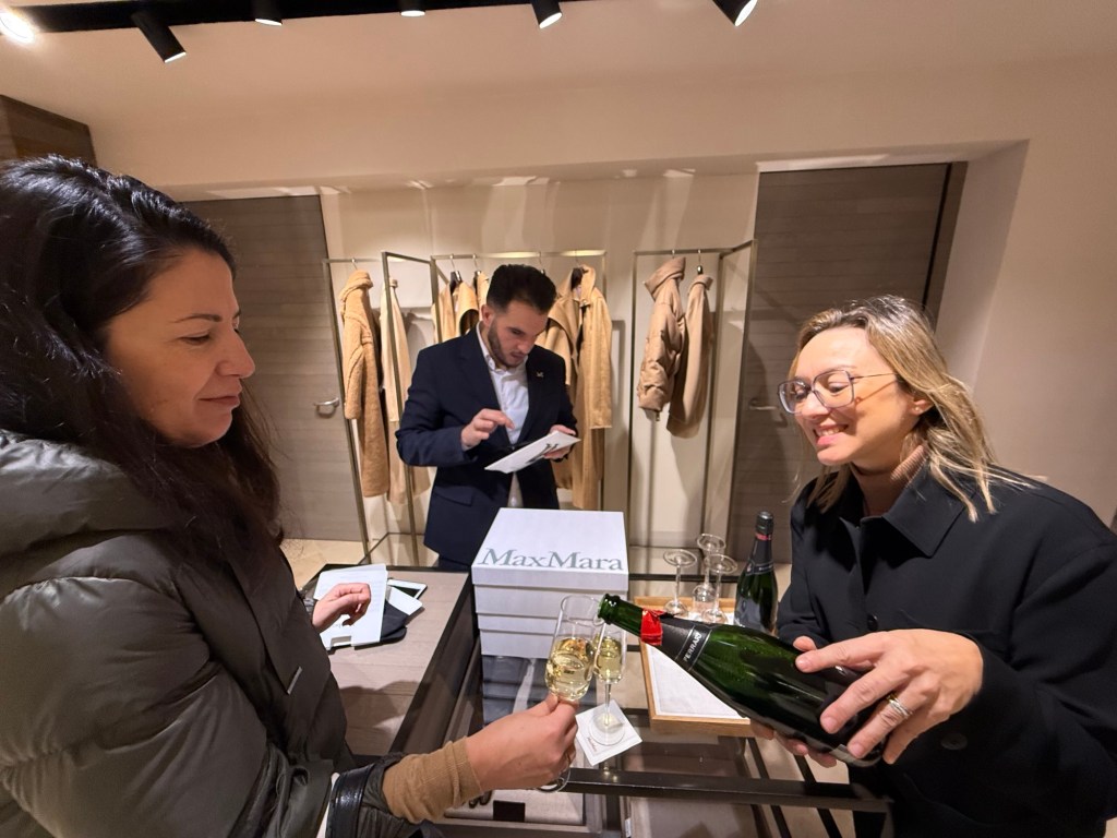 DĂšs lâentrĂ©e, lâatmosphĂšre est Ă la hauteur de la rĂ©putation de la maison : accueil chaleureux, sourire authentique et une coupe de champagne servie avec Ă©lĂ©gance pour accompagner la dĂ©couverte des collections. Entre manteaux iconiques, lunettes de crĂ©ateur et piĂšces intemporelles, tout ici respire le goĂ»t du dĂ©tail et lâamour du style.