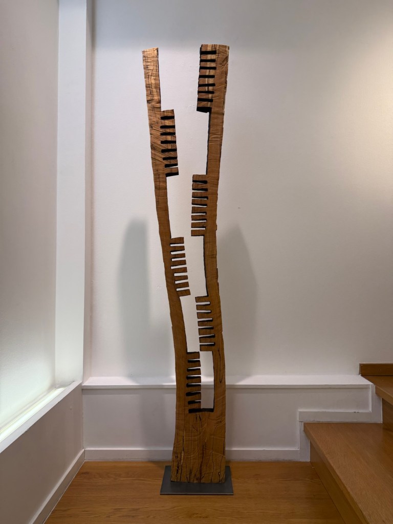 - pièces verticales imposantes, où le bois semble s’étirer et respirer.