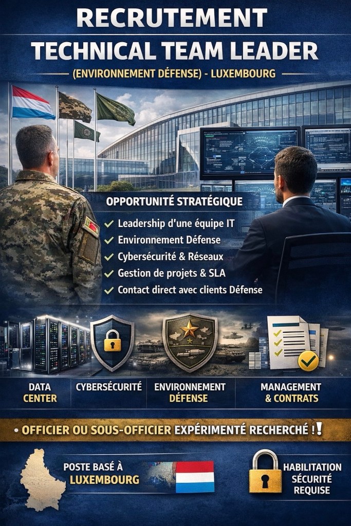 Recrutement – Technical Team Leader, dans un environnement international et Défense au Luxembourg
