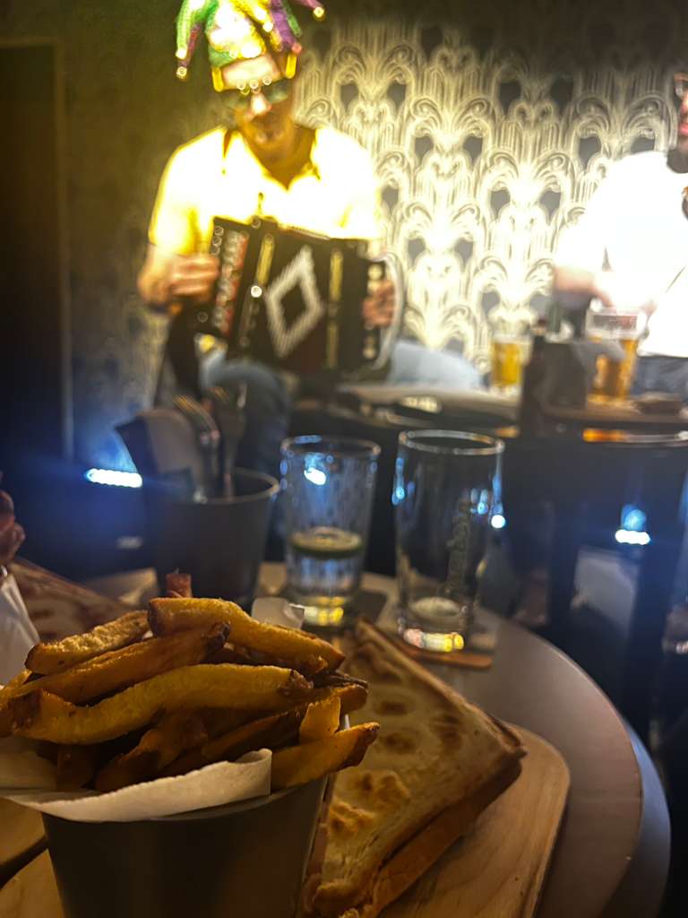 Mardi Gras au Croque Bedaine, un Ă©vĂ©nement convivial placĂ© sous le signe du BĆuf Cajun, de la musique et de la bonne humeur. Le caveau du restaurant, rapidement rempli, sâest transformĂ© en un lieu chaleureux oĂč curieux, habituĂ©s et passionnĂ©s ont partagĂ© une soirĂ©e unique.