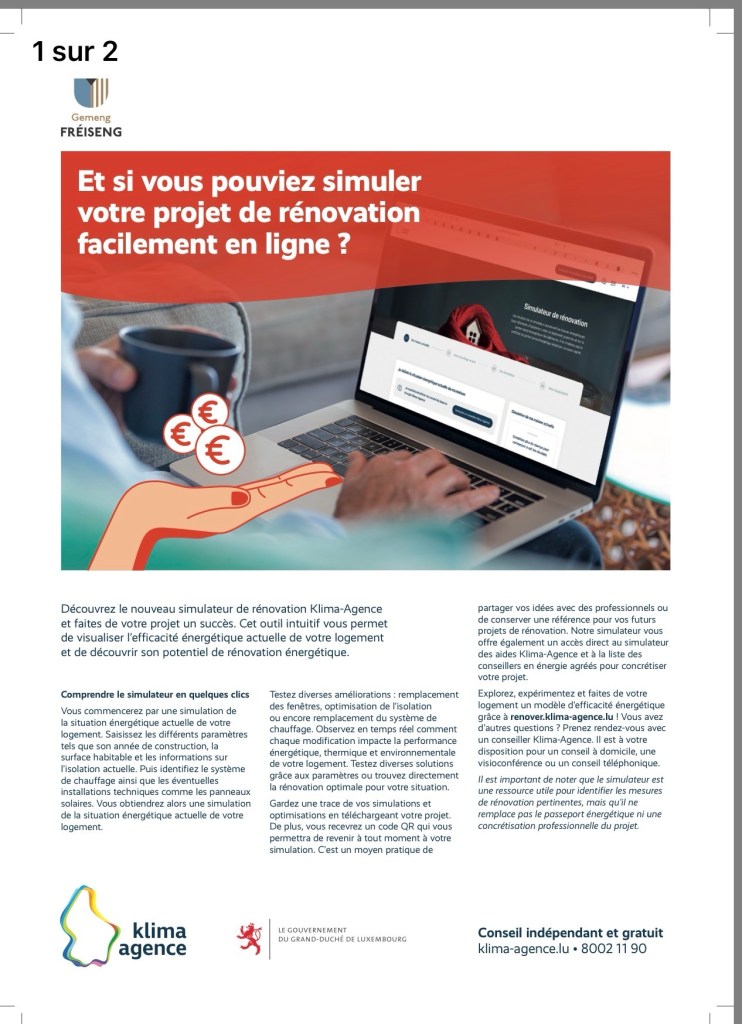 Cette soirée d’information est proposée avec l’expertise de Klima-Agence, l’organisme national qui accompagne les résidents dans leurs projets liés à l’énergie et à la rénovation durable.
