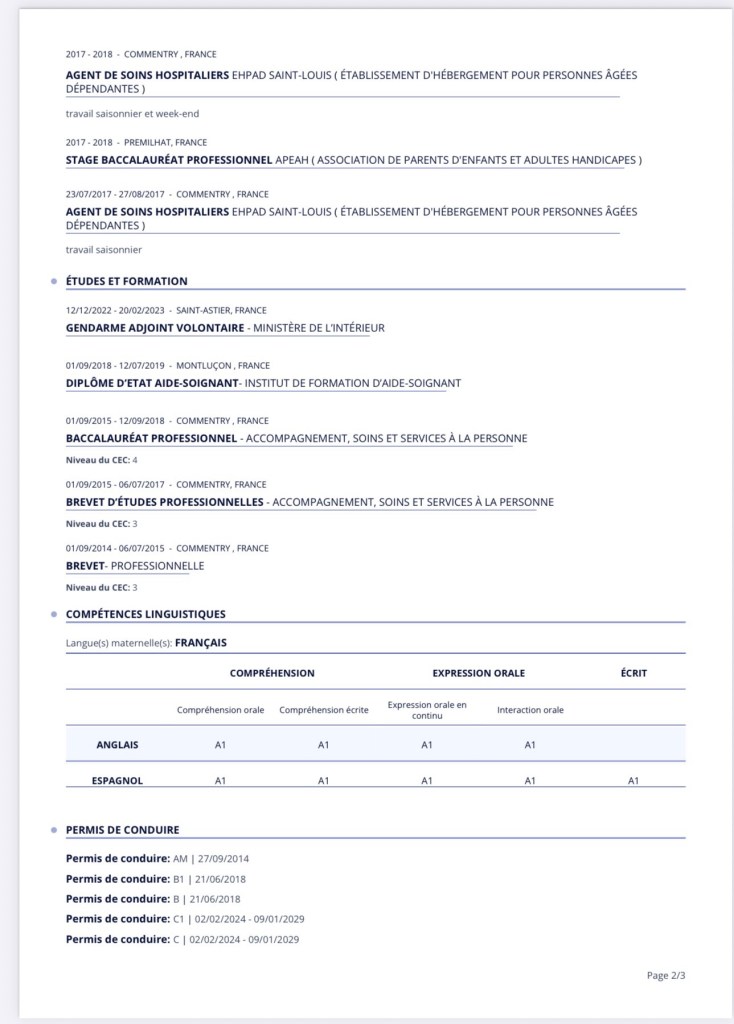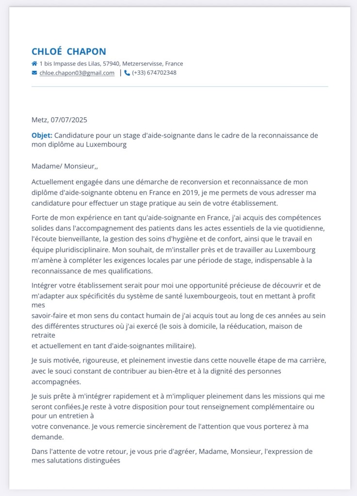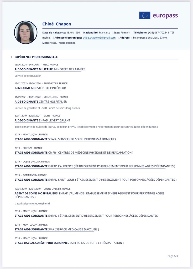 đ«đ·đ€đ±đș CV de ChloĂ© CHAPON / recherche de stage 6 mois aide-soignante pour conversion du diplĂŽme français âŠ