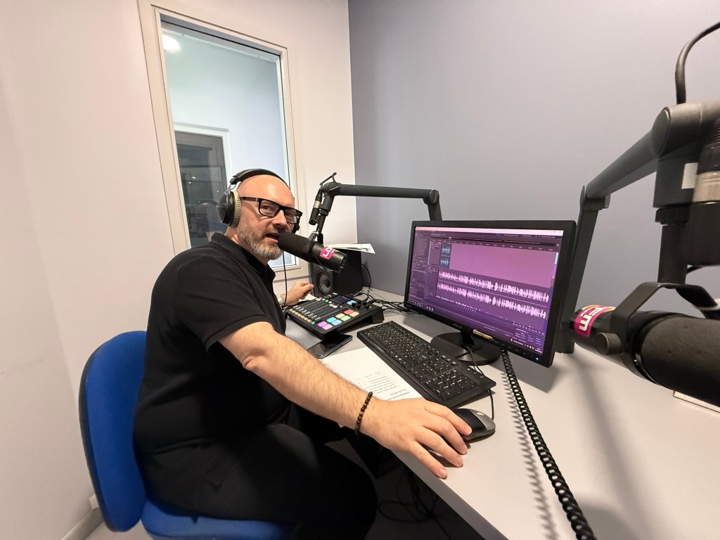 Accueilli par Bruno Terrillon, directeur des programmes, Christophe Biraud a pu découvrir les coulisses d’une radio moderne, alliant technologie de pointe, organisation rigoureuse et ambiance chaleureuse.