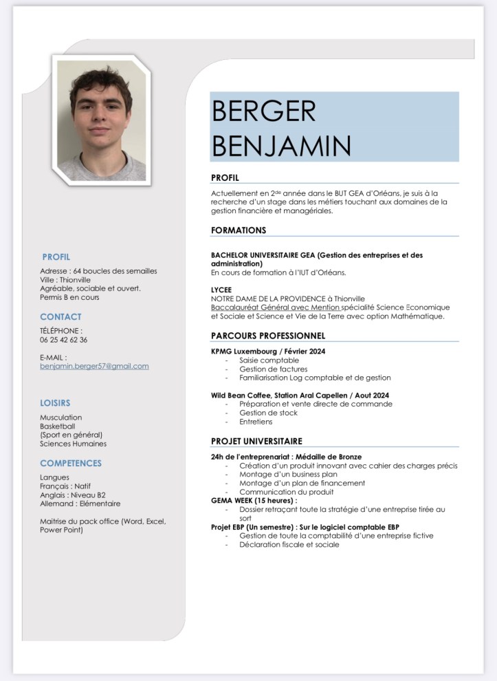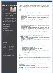 Chaque semaine, nous mettons en avant un ou plusieurs CV, présenté sous forme de photo et disponible au téléchargement au format PDF. Notre objectif est d’offrir une vitrine emploi à notre communauté et lui offrir une visibilité accrue auprès des recruteurs et entreprises locales, et de contribuer à leur succès professionnel.