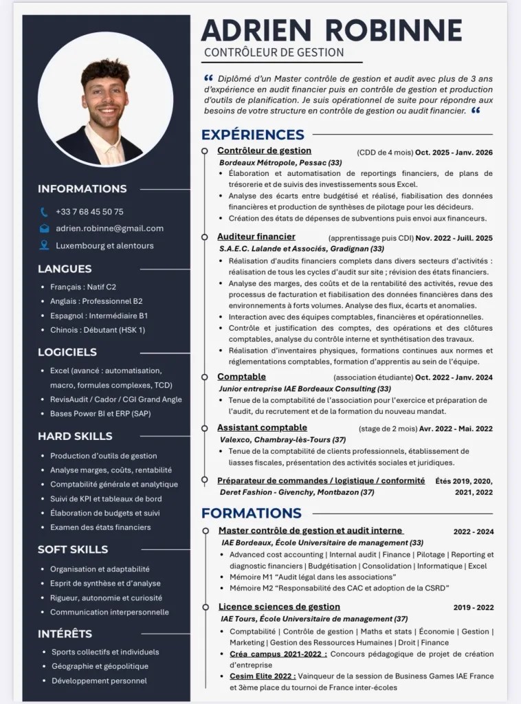 Adrien ROBINNE / Contrôle de gestion, Audit interne ou Audit financier au Luxembourg cv – adrien robinne