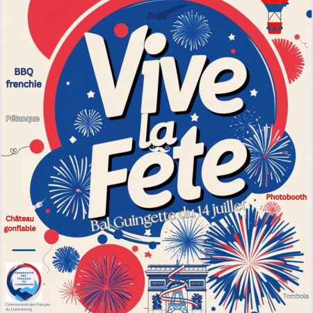 29 juin 202519 juillet 2025 Christophe BIRAUD 🇫🇷🇱🇺🎉🎁🥂🍻🪩🌳 Week-End festif français « VIVE LA FÊTE » pour célébrer le 14 juillet à Luxembourg le samedi 12 et Dimanche 13 juillet.