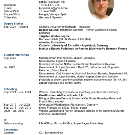 🇫🇷🤝🇱🇺 CV de Julian Koppel ISASI / étudiant en Sciences Politiques / recherche de stage en Ambassade ou Institutions Européennes